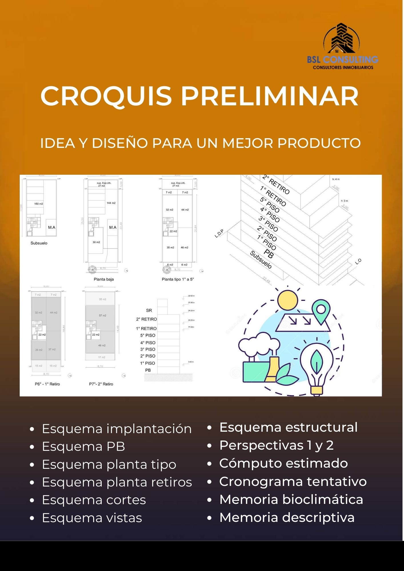 Para plasmar una idea y evaluarla después de los informes de Prefactibilidad o de un Estudio de Mercado, se debería adquirir los croquis preliminares. Estos están compuesto por un conjunto de planos y documentos que definirán la idea principal del emprendimiento y además permite elaborar el resto de las documentaciones.